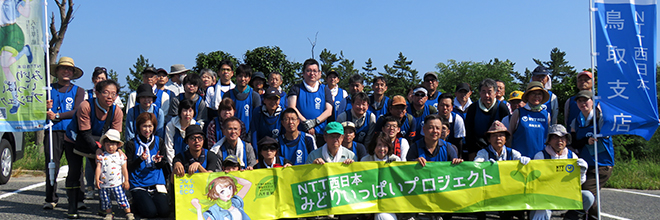 この取り組みは、2018年にNTT西日本鳥取支店が鳥取県・鳥取市と協定(5年)を締結した「みどりいっぱいプロジェクト」の一環で、鳥取県が世界に誇る大自然を大切に守り継ぐことを目的とした森林保全活動です。