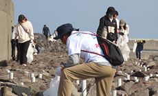 肥前鹿島干潟はラムサール条約に登録され、豊かな自然が残る美しい海岸です。また、一帯はシギやチドリ類などの渡り鳥の中継地および越冬地で、重要生息地でもあります。しかし残念なことに海岸線に心なく投棄されたごみが漂着し、本来の景観美や豊かな生態系が損なわれる危険性があり、憂慮すべき状況となっています。