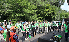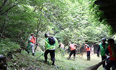 清掃場所には、ギフチョウの幼虫の食草である「カンアオイ」が生育しているため、事前に見本を確認しながら慎重に作業を進め、皆の協力により遊歩道はすっかり綺麗になりました。