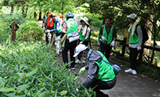 この活動は、里山保全による環境保護を目的に、毎年春と秋の2回、グループ社員とその家族および退職者が参加しています。