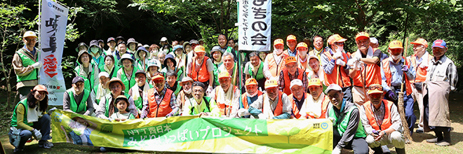 ホーム の中の 企業情報 の中の NTT西日本グループのサステナビリティ の中の みどりいっぱい活動報告 の中の LINE 484 「ながら川ふれあいの森」春の森林ボランティア活動