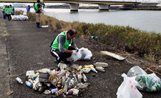 参加者たちはロープを伝いながら慎重に河岸へ降り、ゴミを回収して堤防に引き上げました。堤防上では、ペットボトルのキャップを外し、中身を処理するなどの分別作業が行われ、泥まみれになりながらも懸命に取り組みました。ゴミ袋はすぐにいっぱいになり、次々と山積みになりました。まだ蒸し暑さの残る秋の日でしたが、参加者全員が汗をかきながら力を合わせ、無事に作業を完了しました。