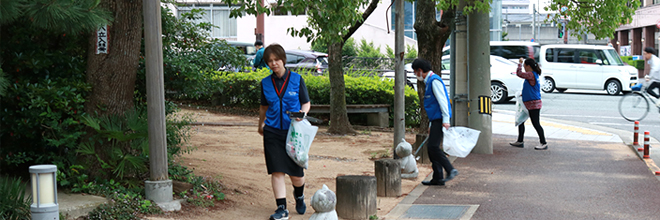 歩道や車道、植え込みなど、普段は気づきにくい場所に落ちているごみを一つひとつ丁寧に拾い集めました。