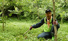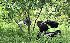 森の中で日陰は多くありましたが、湿度は高く、少し動くだけでも汗が吹き出す中、参加者は黙々と雑草を刈っていきました。