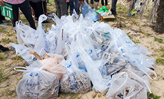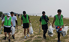 当日は、朝から強い日差しが照りつけて気温は30度を超える真夏日となりましたが、参加者は帽子やタオルで暑さ対策をしながら、汗を流して懸命にごみの回収にあたりました。海岸には多くのごみが散乱しており、わずか40分ほどの活動時間にもかかわらず、ペットボトルや空き缶、花火の燃えかす、ビニール袋、流木など、さまざまな種類の漂着ごみが集められました。