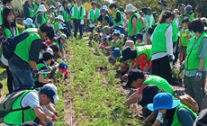 植え付け開始前には、東海グループによるセレモニーが行われ、その後、参加企業が一堂に会した全体セレモニーへと続きました。