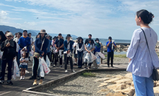 参加者は、安全に配慮しつつ海岸周辺のごみ拾いに取り組みました。一見すると綺麗に見える浜辺でも、実際に歩いてみると多数のごみが落ちており、回収するうちにたくさんのごみが集まりました。