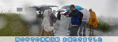 当日はあいにく朝から雨模様となりましたが、開始時間の8時頃には一時的に雨があがるとの予報もあり、参加者一同でその時を待ちながら集合しました。