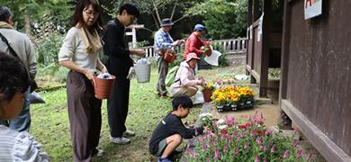 作業後には、「花いっぱい活動」の一環として寄せ植え鉢づくりも行い、 季節の花々を組み合わせた彩り豊かな鉢が完成し、参加者の笑顔とともに会場を華やかに彩りました。