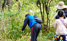 参加者は指定エリアに移動し、「風に負けない大きな木に育ってほしい」という願いを込めて下草刈りを行い、生い茂る草に苦戦しながらも普段使い慣れない鎌を手に汗を流して、約1時間の作業を終えました。