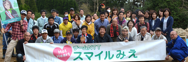 Midori Ippai Project Activities LINE 117Forest Protection Activity in "Hikari no Mori (Bright Forest)" April 16, 2015 NTT West Mie Group