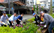 On May 16 (Saturday), NTT West Tokushima Branch Group took part as a co-sponsor company in the "Tokushima Downtown Flower Road Project" planting activity as part of the "Midori Ippai Project." The activity was hosted by the NPO "Shinmachi-gawa wo Mamoru Kai (Association to Preserve Shinmachi River)."