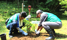 On June 13, 2015 (Saturday), NTT West Gifu Group held a forest volunteer activity to plant trees and weed undergrowth at "Nagaragawa Fureai no Mori."