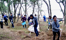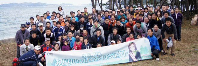 Midori Ippai Project Activities LINE 143Pine Forest Conservation Activity at Fukui Beach of Itoshima City October 31, 2015 NTT West Fukuoka Group