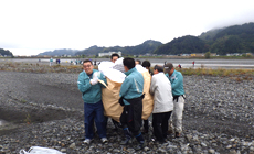 Although the quantity of driftwood was lesser compared to the previous year with a decrease in the number of typhoons that approached or directly hit Shizuoka Prefecture, the amount of driftwood and trash found in the river was still considerable. Participants of the festival combined their efforts to move the driftwood and trash to the storage space while drenching in sweat.