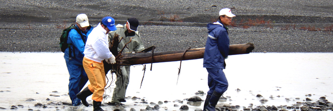 Abe River (approximately 53km in length) flows from the 3,000m-tall Southern Alps of Japan into Suruga Bay (with a maximum depth of about 2,500m, the deepest bay in Japan). Due to the huge difference in height, it is a torrential river that is comparable to the rivers of the Himalayan mountains. For this reason, the water level rises rapidly when there is heavy rainfall, which brings along with it driftwood and other types of trash.