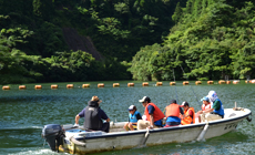 This activity to remove alien fish species from Matsumoto Dam was held as part of the NTT West Midori Ippai Project for the first time.