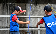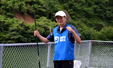There were worries at first that the event might be affected by the approaching typhoon, but the weather turned out clear. A total of 50 employees and family members from NTT West Kagoshima Group engaged in the activity, which lasted for about two hours from 8:30a.m. to 10:30a.m., to remove non-native fish species such as bluegills that inhabit the dam.