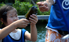 Thanks to the kind arrangement of Matsumoto Land Improvement District, families who participated with their children were brought to spots where fish can be caught in a boat . Bluegills were caught immediately after attaching a bait to the hook and tossing the fishing line into the water. The activity to remove alien fish species was an enjoyable one with laughter from the children.