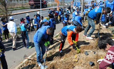 Midori Ippai Project Activities LINE 157Participation in the "Tori-ga-Saezuru Midori-no-Kairo 11th Tree Planting Event" March 26, 2016 NTT West Kitakyushu Group