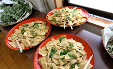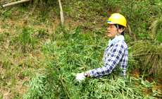 Participants engaged in tasks such as cutting down unwanted bamboos followed by transporting large bamboo plants by lifting them with a rope as well as digging bamboo shoots under the guidance of Yazu Central Forest Owners' Cooperative.