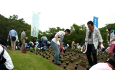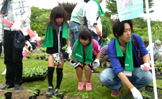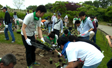 Midori Ippai Project Activities LINE 173Participation in Higashiyama Zoo and Botanical Gardens Flower Field "Hana Ippai Project" (Making of Summer Flowerbeds) May 28, 2016 NTT West Tokai Group