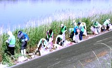 This activity is held twice a year in spring and autumn, and is a joint effort among organizations such as the residents, students, corporate groups and government bodies. It has been attracting a large number of participants, and employees and family members of the NTT West Group companies also take part in it every year.