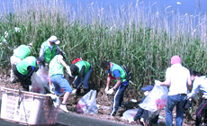 Cleaning work was carried out efficiently, with each of the smaller groups further divided into two sub-groups, one to haul and sort trash at the levee and the other to move down to the riverside and clean the site.