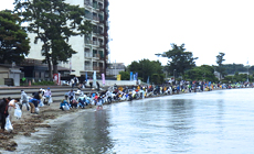 The Lake Hamana Cleaning Mission is organized by the "Hamanako no Mizu wo Kirei ni suru Kai (Committee for Keeping the Water of Lake Hamana Clean)," which carries out activities to maintain the water quality of Lake Hamana and beautify the surroundings. It is held on the first Sunday of June every year at the lakeside in Hamamatsu City and Kosai City. This year marks the 38th round of the activity.