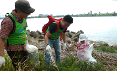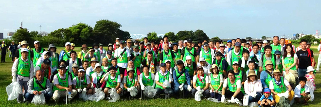 "Kinokawa River Mass Cleaning" is part of the activities for the "River Protection Month" that is fixed in July every year by the Ministry of Land, Infrastructure, Transport and Tourism. The aim is to actively promote efforts for revitalizing the entire river and maintaining it in good condition, while at the same time raise awareness about river protection as well as proper utilization of rivers.
