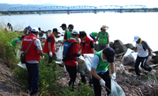 The cleaning activity was carried out along the stretch from Kinokawa Bridge to Civic Sports Plaza and Narutakigawa River confluence as well as the opposite shore.