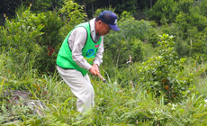 Wakayama Group started its activity under the name of "Brilliant Forest" since April 2008. This is the ninth year of the endeavor. The activity is held yearly during the rainy season, and as the site is located on a slope, it is necessary to climb a steep hill for about 10 minutes. Though a challenging task, participants engaged in the work feeling refreshed after climbing up the slope.