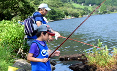 Every participant challenged the task with their own fishing style, with some using the bamboo fishing rods prepared by the administrative office, while others using their own fishing rods. There were a lot of tree shades along the lake with cool breeze blowing every now and then. Participants felt refreshed as they enjoyed the fishing experience while overlooking the seven mountains in the surrounding.