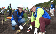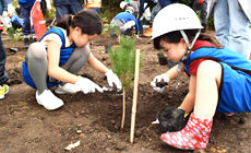 Under the guidance of staff from the Forest Department on how to plant trees and what precautions to take, about 1,000 saplings were planted, including Japanese black pine that is more resistant to pine weevils, as well as Japanese blue oak and Japanese stone oak that bear acorns. Participants carefully planted each sapling with the hope that they would grow up healthily into big trees.
