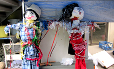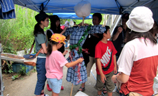 Making of scarecrows was carried out mainly by the participating children with support from the university students. Participants brought with them unwanted clothes from their homes, which were used to make into four colorful scarecrows decorated with bright-colored accessories. Upon completion, all the participants helped to carry the scarecrows to the rice field, where they were installed to protect the rice plants from birds and other animals.
