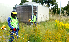 NTT West Fukui Group carries out weeding activities yearly from May to October at company housing areas, sites where bachelors' apartments were located and inside the premises of unmanned switching centers throughout Fukui Prefecture. In FY2016, weeding was performed at 29 out of the total of 44 sites.