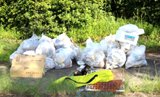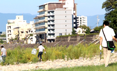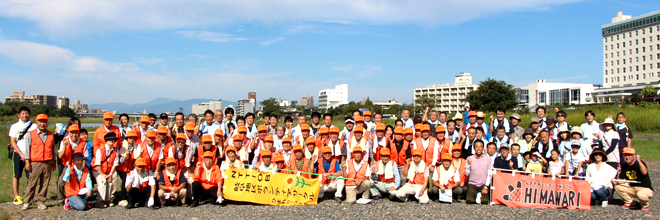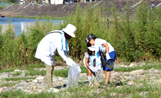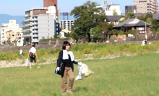The venue of the cleaning activity was the wide riverbed area along Nagara River where camping and barbeque activities are held during the summer holidays. Perhaps for this reason, large quantities of litter that were not brought home by the users, such as plastic bottles, empty cans, food wastes, disposable utensils, grilling meshes and fireworks, were found scattered around this area at the end of summer, and there were also a lot of trash from the upstream that were washed ashore such as when the water level of the river rose.
