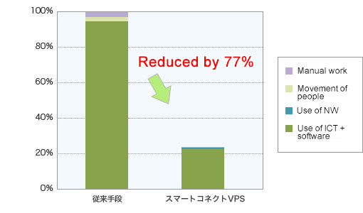 Compared to the traditional system where individual servers are set up by the customers and utilized including installation, maintenance and operation of air-conditioning systems and NW equipment, customers' servers are managed collectively by the data center in the case of Smart Connect VPS, which also increases the efficiency with the use of common facilities.