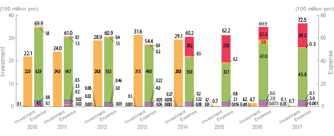 The amount of investment in FY 2017 was 10 million yen following a reduction in the pollution prevention cost for investing in air-conditioners.
