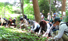 After the planting activity, they also experienced gathering fallen leaves for use as leaf mold and also soil cultivation from the leaf mold using a sieve.