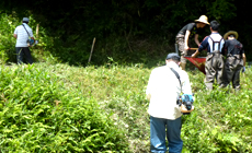 So, in order to protect the village forest, the male participants were mainly assigned to either trim grass and plants with a height of 50cm using a sickle, or cut those that were close to 2m (kuma bamboo grass, etc.) using one of the four grass cutters.
