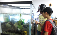 The event kicked off with a tour to the mini satoyama aquarium run by the students. Children who participated for the first time got really excited and stared intriguingly into the fish tanks.