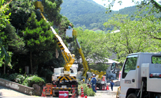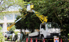 Midori Ippai Project Activities LINE 246Local Contribution and Environment Conservation Activities Using Vehicle-mounted Work Platforms August 2 to 29, 2017 NTT West Nagasaki Group