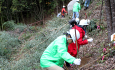 A total of about 70 participants who are employees and family members of NTT West Kagawa Group and its partner companies, as well as members of organizations such as Kagawa Prefecture Greenery Development Section and Shionoe-cho Forestry Cooperative took part in this event where 200 yamazakura cherry saplings were planted.