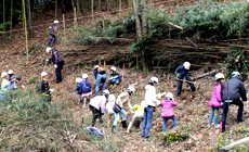 The Forest Matching Agreement is an agreement that is concluded between a private sector company that is interested in forest development with the prefecture or city government, which gathers information on forests that require maintenance. Promoting "cooperative forest development" through participation by the private sector and bearing of expenses, our employees and their family members have so far engaged in the planting and thinning of cypress and other trees.