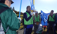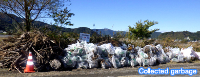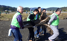 Held yearly during this period after the typhoon season, a total of approximately 1,200 members of corporations and groups took part in the festival this year. Due to the two typhoons that hit the area in October, huge quantities of driftwood and trash were washed ashore. All the participants united their effort to clean up the riverbed by moving the trash to the collection point.