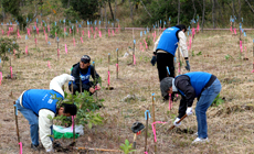 Miyazaki Group was assigned to the group for planting six species of seedlings including Japanese bayberry and Japanese stone oak. Participants carefully planted the seedlings one by one and tied them against a bamboo pole to prevent them from falling, while hoping that they would grow into large trees that can withstand the force of the wind.