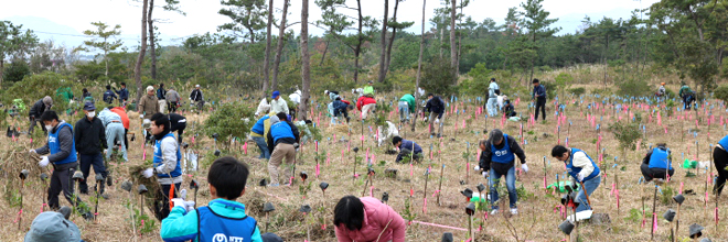 Midori Ippai Project Activities LINE 264Participation in 12th "Forestation with Water and Greenery" Prefectural Resident Volunteer Activity November 25, 2017 NTT West Miyazaki Group