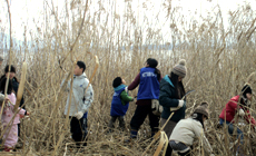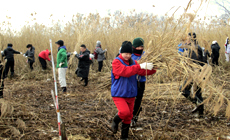 The "Otsu City Lake Biwa Reed Cutting Activity" is held with the aim to maintain the reed colonies by cutting them in winter to promote growth of the sprouts, which will in turn help to purify the water of Lake Biwa and maintain the ecosystem.