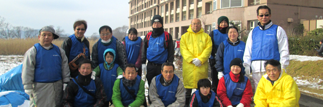 On January 28, 2018 (Sunday), the "Otsu City Lake Biwa Reed Cutting Activity" was held by Otsu City at Otsu City, Ogoto. A total of 22 participants, including employees and family members of NTT West Shiga Group, took part in the activity.